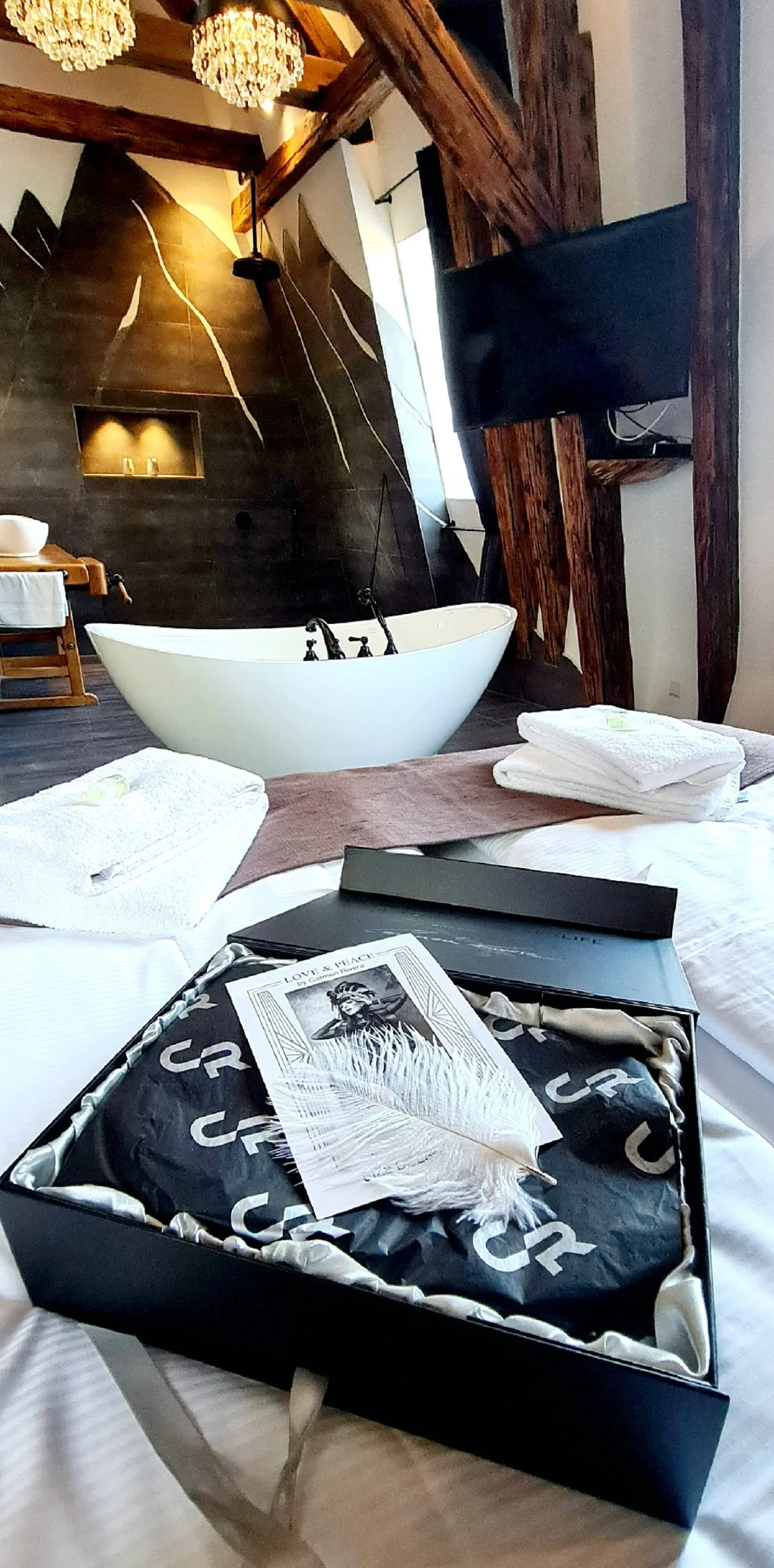 The harness set is delivered in a noble "black box", embedded inside with silver shimmering satin and magnetic closure. A real "treasure chest" to store your new sextoy!